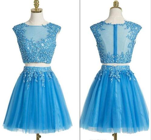 Teen Cocktail Dresses : Teen Cocktail Dresses 2017 Blue Sheer Lace Appliques Beaded Short Prom Gowns 2 Pieces Tulle Mini Che On Luulla - See more ideas about dresses, fashion, short cocktail dress.